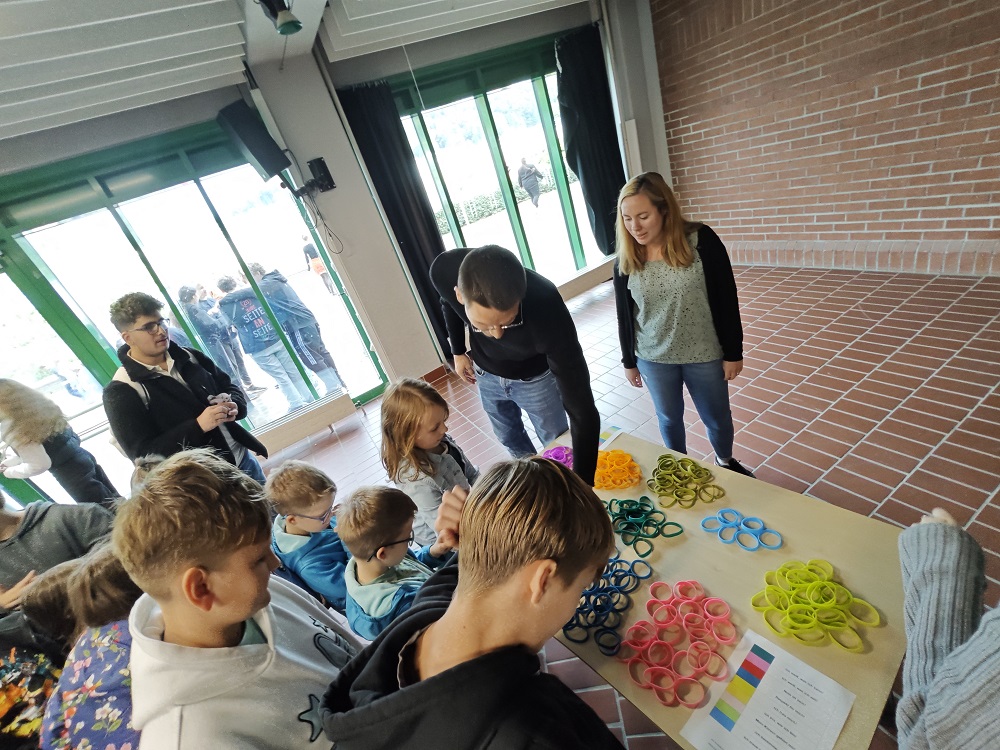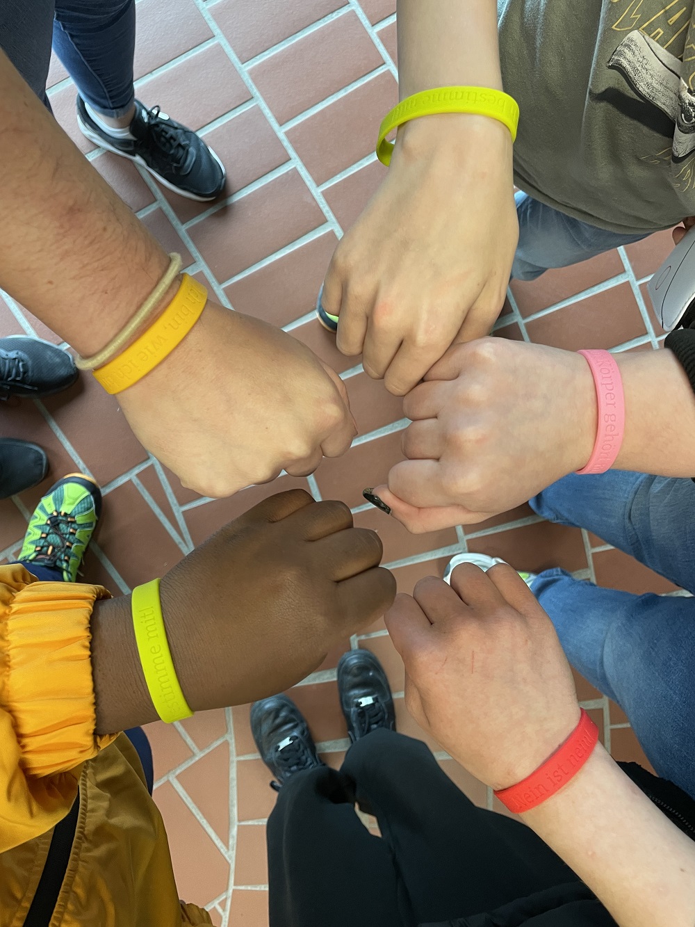 Ein Highlight für alle war die Armbandaktion: In einer großen Pause erhielten alle Schülerinnen und Schüler farbige Armbänder mit klaren Botschaften wie „Nein ist nein!“ oder „Ich traue meinem Gefühl!“. Viele tragen sie bis heute mit Stolz.