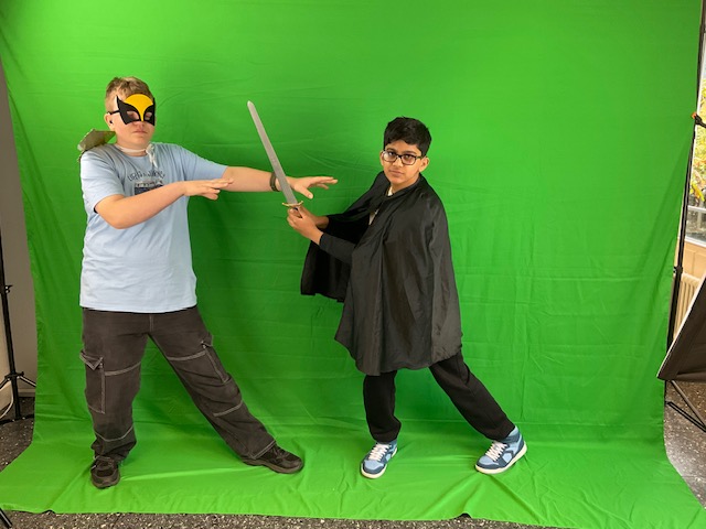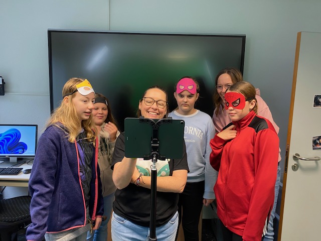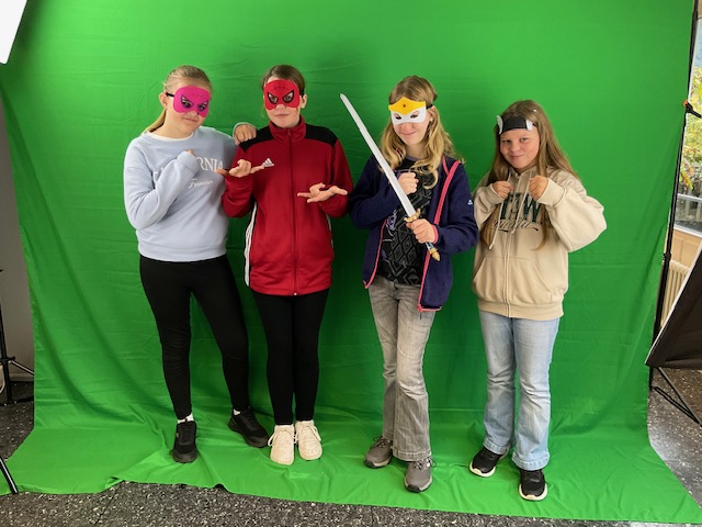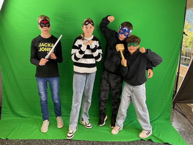 In der Sekundarstufe I stand das Motto „Unsere Superkraft“ im Mittelpunkt. Mit Hilfe der Greenscreentechnik im MBZ entstanden beeindruckende Klassenfotos, bei denen jede Gruppe ihre Stärken in Szene setzen konnte, ob im Weltraum oder als Superhelden.
