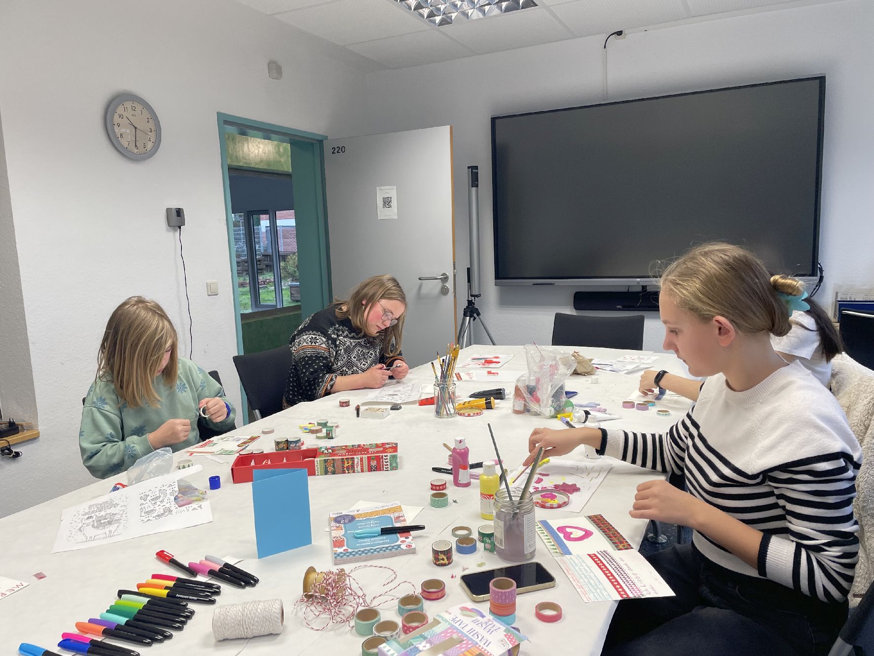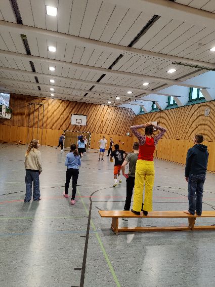 Nach einer kurzen Nacht und einem leckeren Frühstück konnten die Lamas dann wählen: Man konnte sich in der Turnhalle so richtig austoben, bei Zombie-Ball, Badminton, Rollbrett-Curling und vielem mehr. Alternativ gab es ein kreatives Angebot, bei dem man Weihnachtskarten gestalten und kleine Kunstwerke aus Kaltporzellan erschaffen konnte.