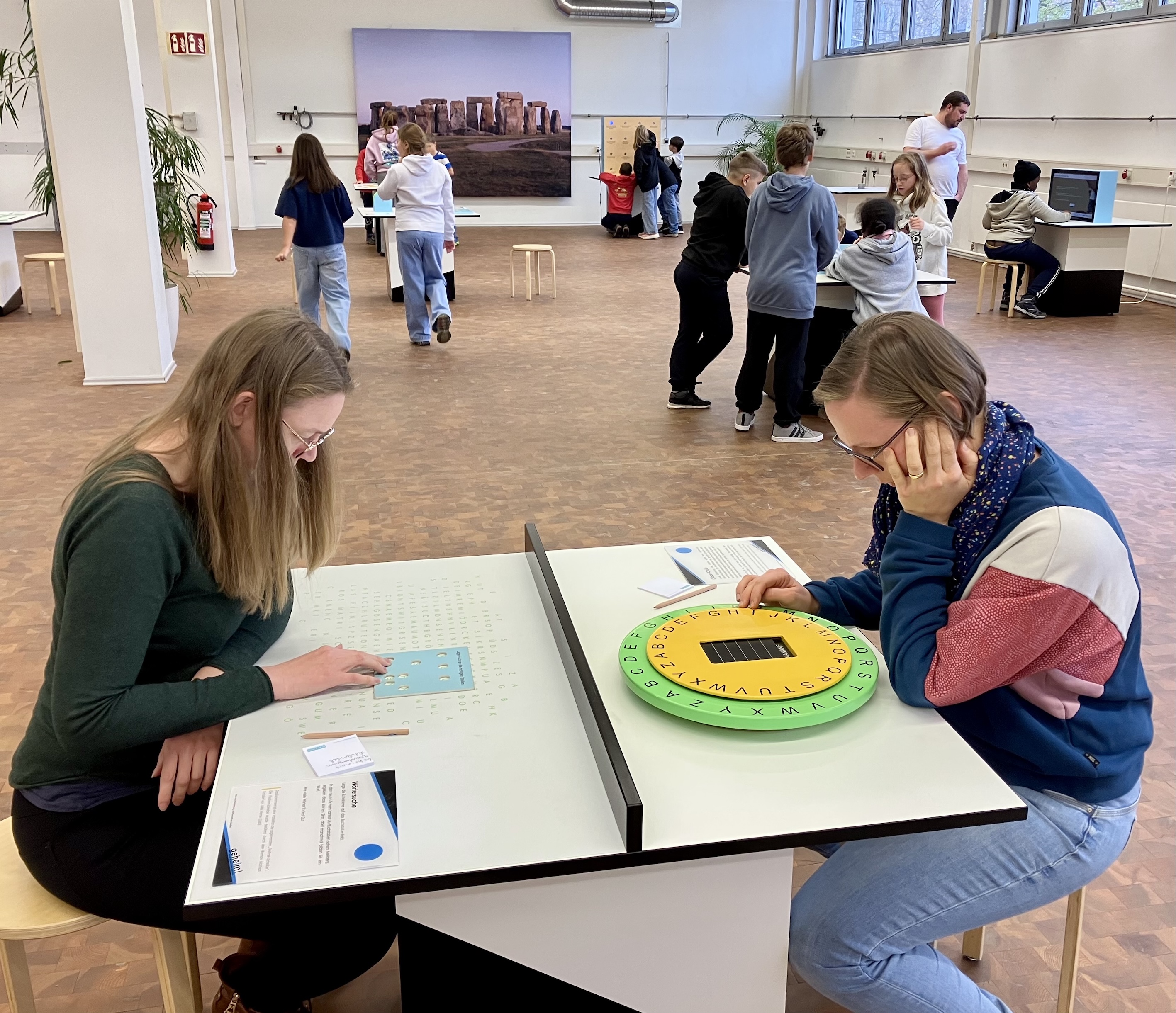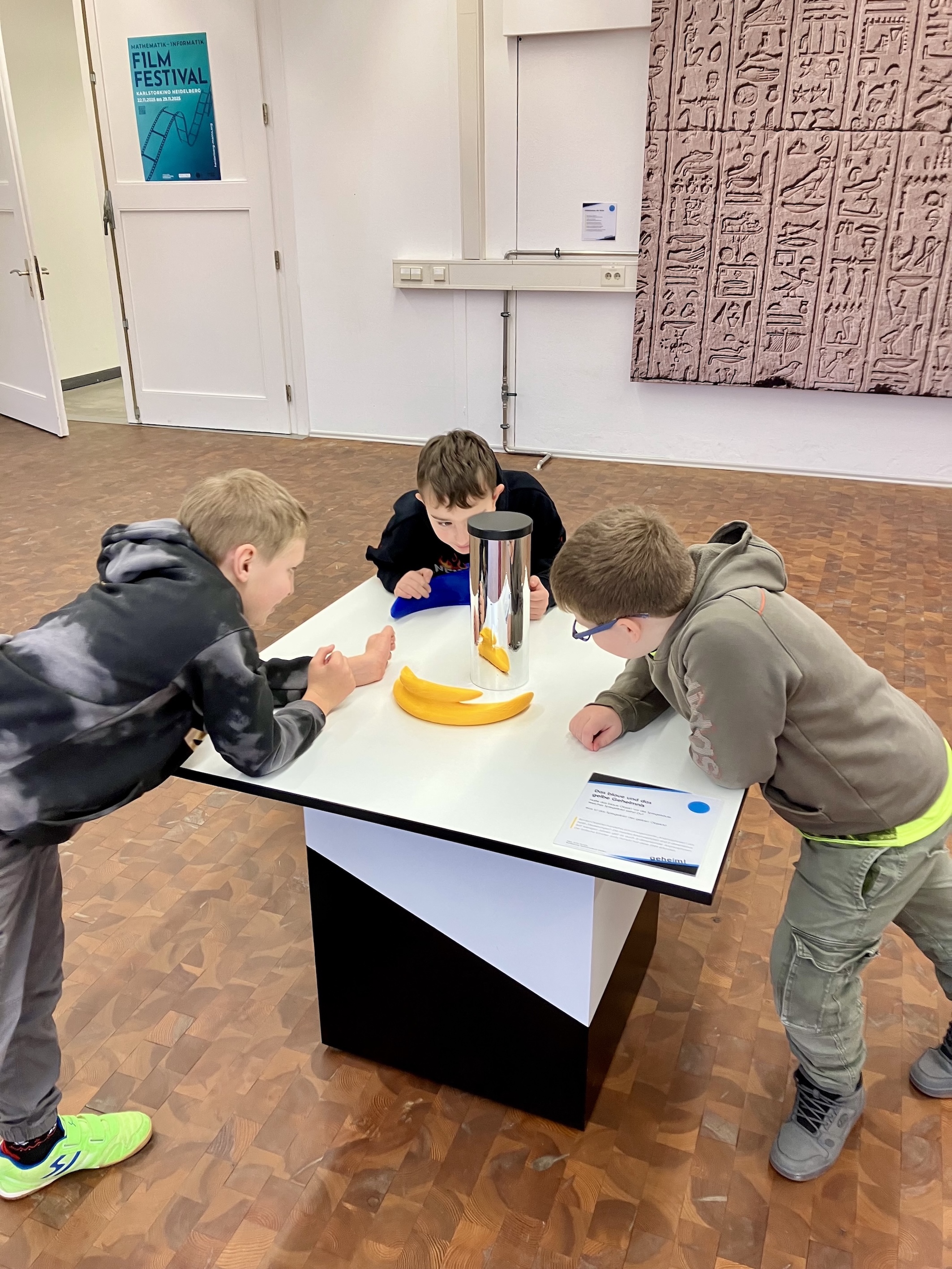 Am 25. November besuchten wir vierten Klassen der Grundschule Sprache die Mathematik-Informatik-Stationen (MAINS) in Heidelberg. Das Thema war "Geheim". An vielen verschiedenen Stationen waren wir Geheimnissen auf der Spur. Wir knackten geheime Codes, entzifferten Geheimschriften, lernten die chinesischen Zahlen kennen und "zauberten" Katzen und Enten aus Bananen. Außerdem konnten wir sehen, wie schnell sich Geheimnisse verbreiten, entschlüsselten Sprichwörter und hatten Spaß bei einem Lego-Film.