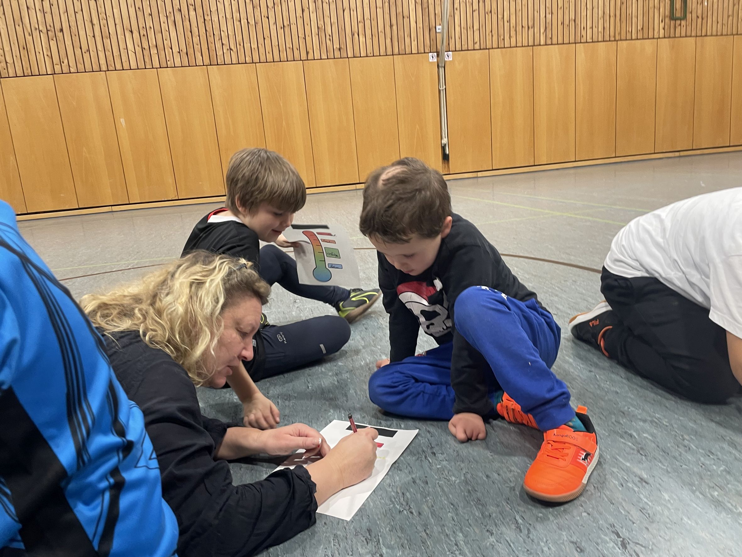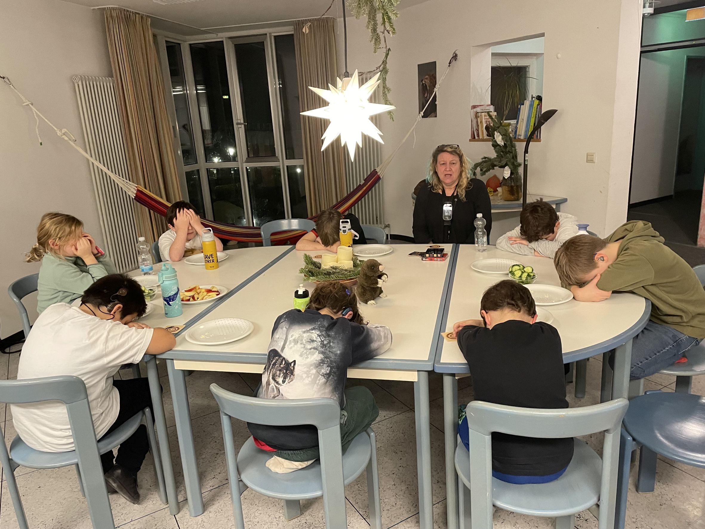 Auch wir können unsere Stimme unterschiedlich benutzen: keine Stimme, Flüsterstimme, Drinnenstimme, Draußenstimme oder sogar unsere Alarmstimme. Jede Stimme passt nur in bestimmten Situation – genauso wie bei den Tieren! Darum haben wir unsere „Lautsprecher“ – also unsere Stimmen – einmal richtig ausprobiert. Das war nicht immer für alle angenehm. Zum Glück konnten manche Kinder ihre Hörgeräte kurz ausschalten. In der Schule geht das aber nicht immer. Deshalb haben wir darüber gesprochen, wie laut sich verschiedene Stimmen anfühlen und wie wir anderen sagen können, wenn uns etwas zu laut ist. Danach durfte jedes Kind sein eigenes Lautstärkebarometer gestalten – mit Worten und Bildern, die gut zu ihm passen. Zum Schluss spielten wir noch eine schnelle Runde „Wolf, Schaf oder Stein“. Dabei wurden wir richtig warm und mussten ordentlich rennen! Und dann… hatten wir Hunger wie die Wölfe! Es gab leckere Pizza-Brötchen, die sich jedes Kind selbst belegen durfte. Mmmh! Und natürlich durfte auch eine Runde Werwolf nicht fehlen. Wir freuen uns schon sehr auf den nächsten Freitagsclub am 16. Januar 2026!