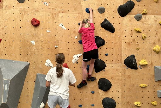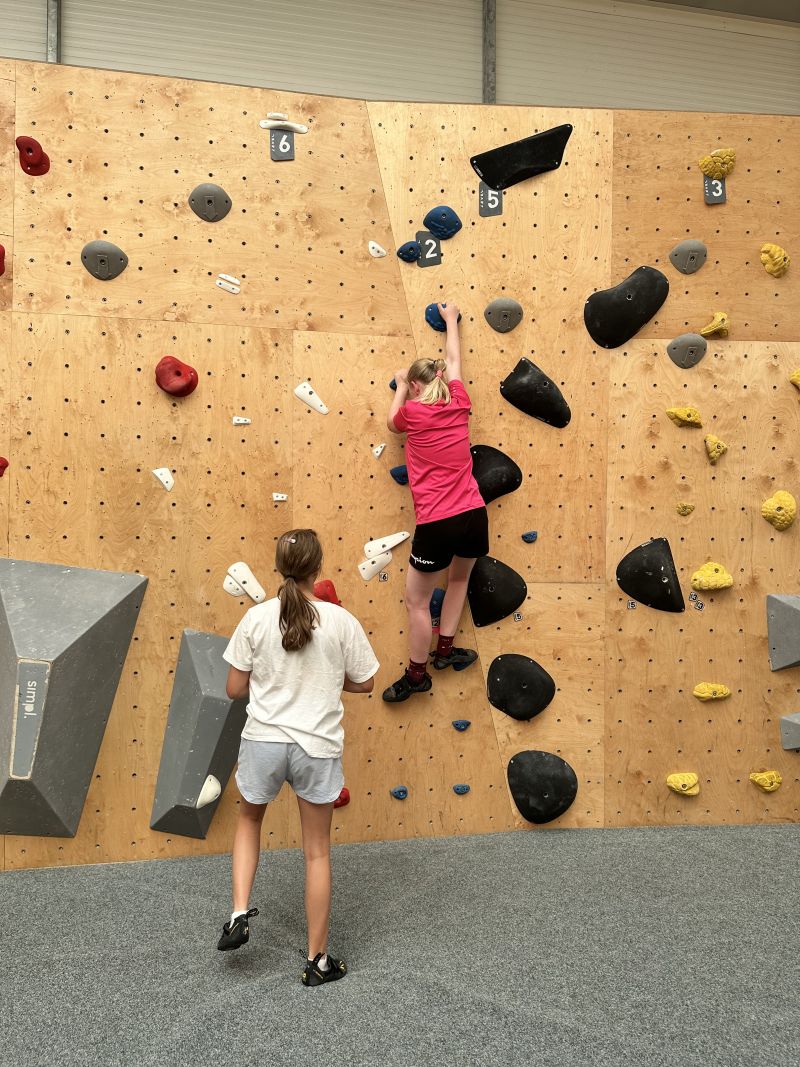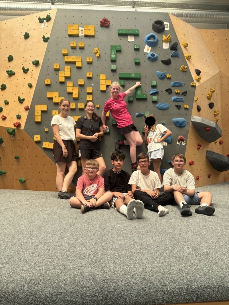 Nach einer kurzen Einführung in die Sicherheitsregeln und erste Techniken konnten die Schülerinnen und Schüler gleich loslegen. Mit viel Mut, Kreativität und Teamgeist wurden verschiedene Routen ausprobiert – manche leicht, manche richtig knifflig! Besonders spannend waren die kleinen Spiele und Herausforderungen, bei denen man z. B. nur mit einer Hand oder auf bestimmten Farben klettern durfte.