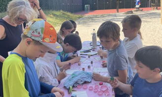 Manche rochen beruhigend nach Lavendel oder Zirbenholz – andere fanden, dass sie eher wie „Stinksäckchen“ rochen. Jeder füllte sein Kissen, nach seinem Geschmack. In diesem Freitagsclub drehte sich alles um Heilpflanzen, denn das hatten sich die Kinder gewünscht. Deshalb pflanzten wir auch Sonnenblumenkerne ein. Wir überlegten gemeinsam: Was braucht ein Samen eigentlich, um zu wachsen? Wasser, Licht, Wärme – und natürlich ein bisschen Geduld.