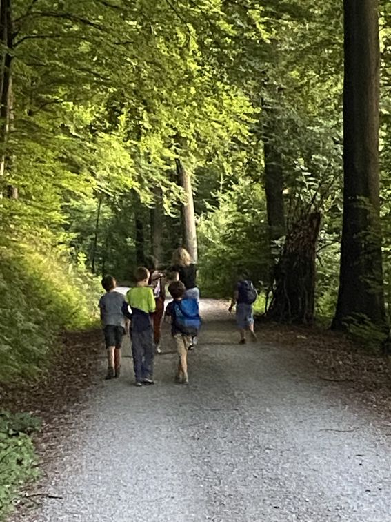 Danach machten wir einen langen Spaziergang durch den Wald – ganze drei Kilometer! Dabei entdeckten wir sogar noch ein paar Heilpflanzen. Als wir zurück zur Schule kamen, war es schon dunkel. Zeit für einen kleinen Mitternachtssnack!