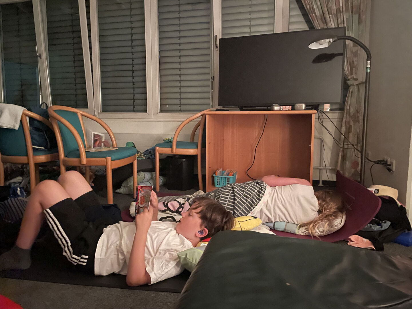 Am Freitag war es endlich so weit: Die Übernachtung mit dem Freitagsclub stand vor der Tür! Nach und nach kamen viele Kinder mit Koffern, Rucksäcken und Tüten in unsere Internatsgruppe. Alle waren gespannt und ein bisschen aufgeregt.